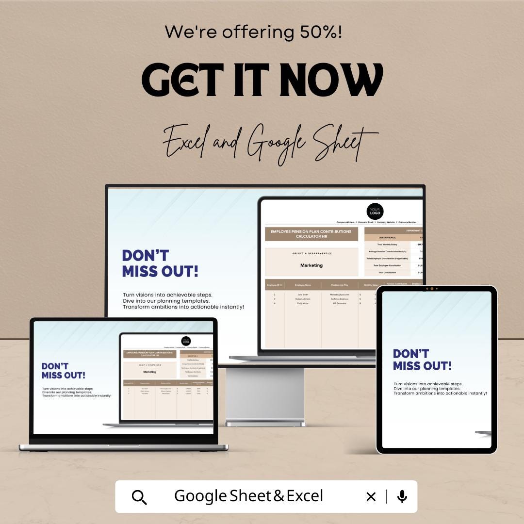 Employee Pension Plan Contributions Calculator HR Sheet | Excel & Google Sheet Template | Easy HR Management Tool | Instant Download