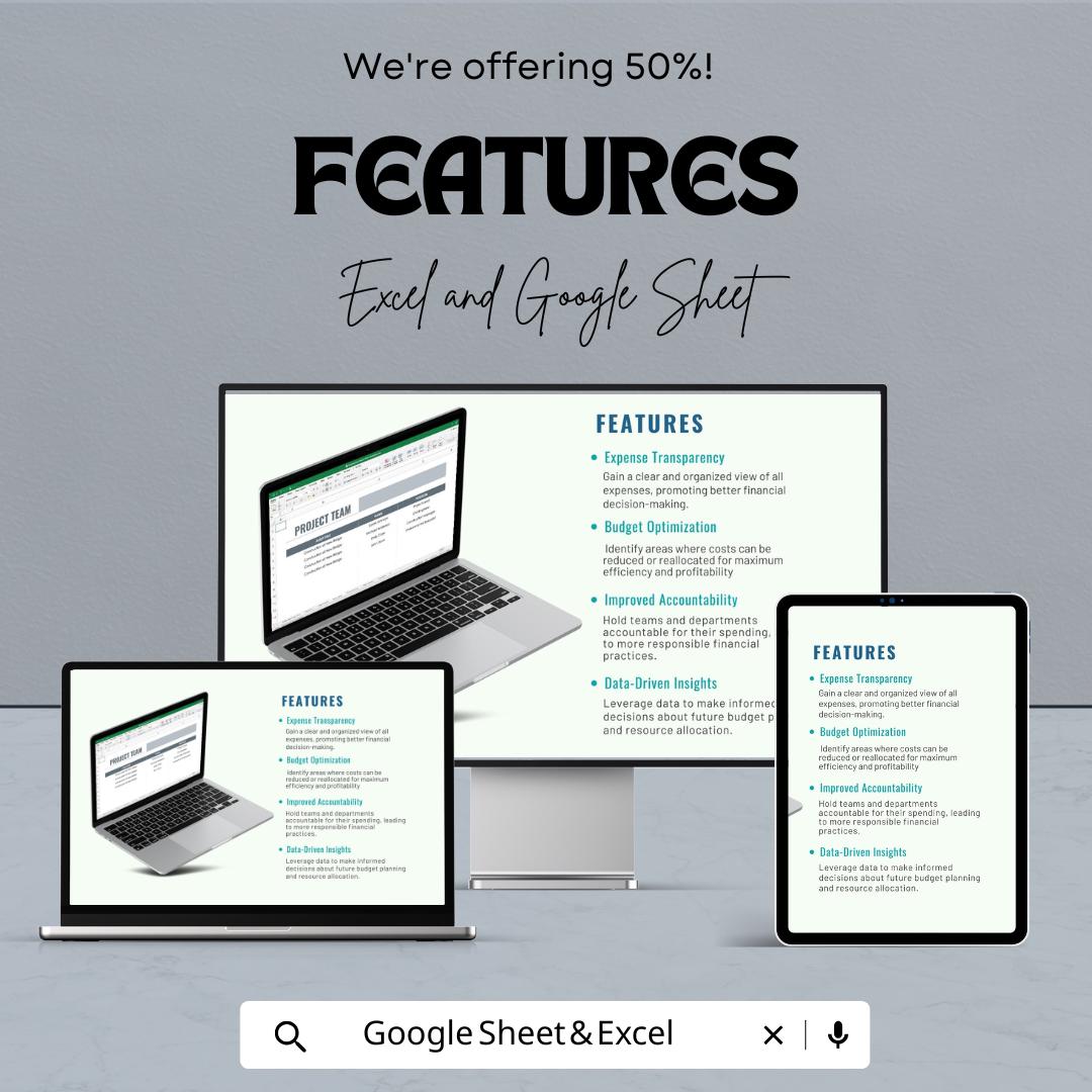 Pre-defined sections for budgeting, expenses, task assignments, and milestone tracking.