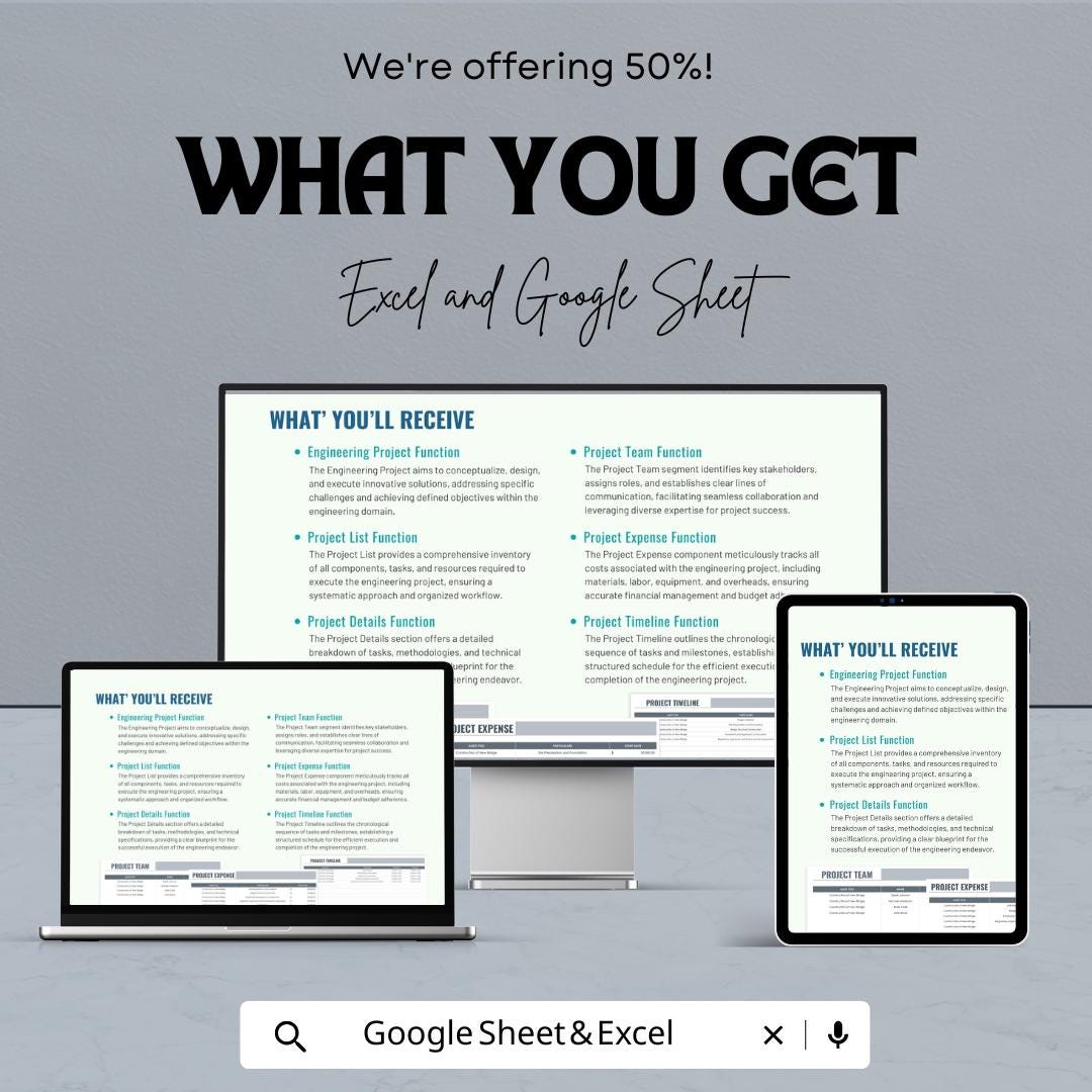 Engineering Project Plan Sheet | Excel & Google Sheets Template | Project Budgeting, Timeline Management, Task Assignment |