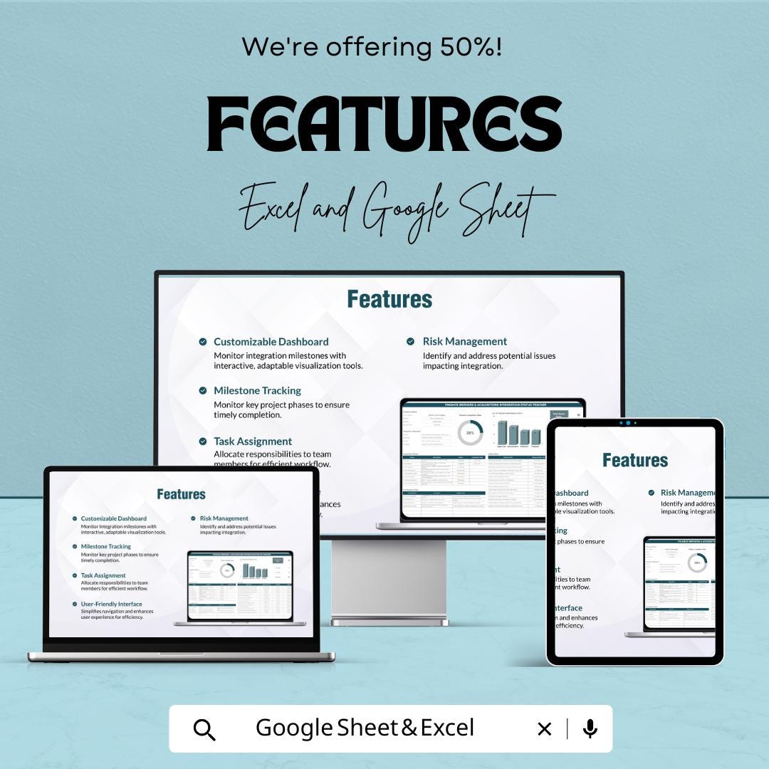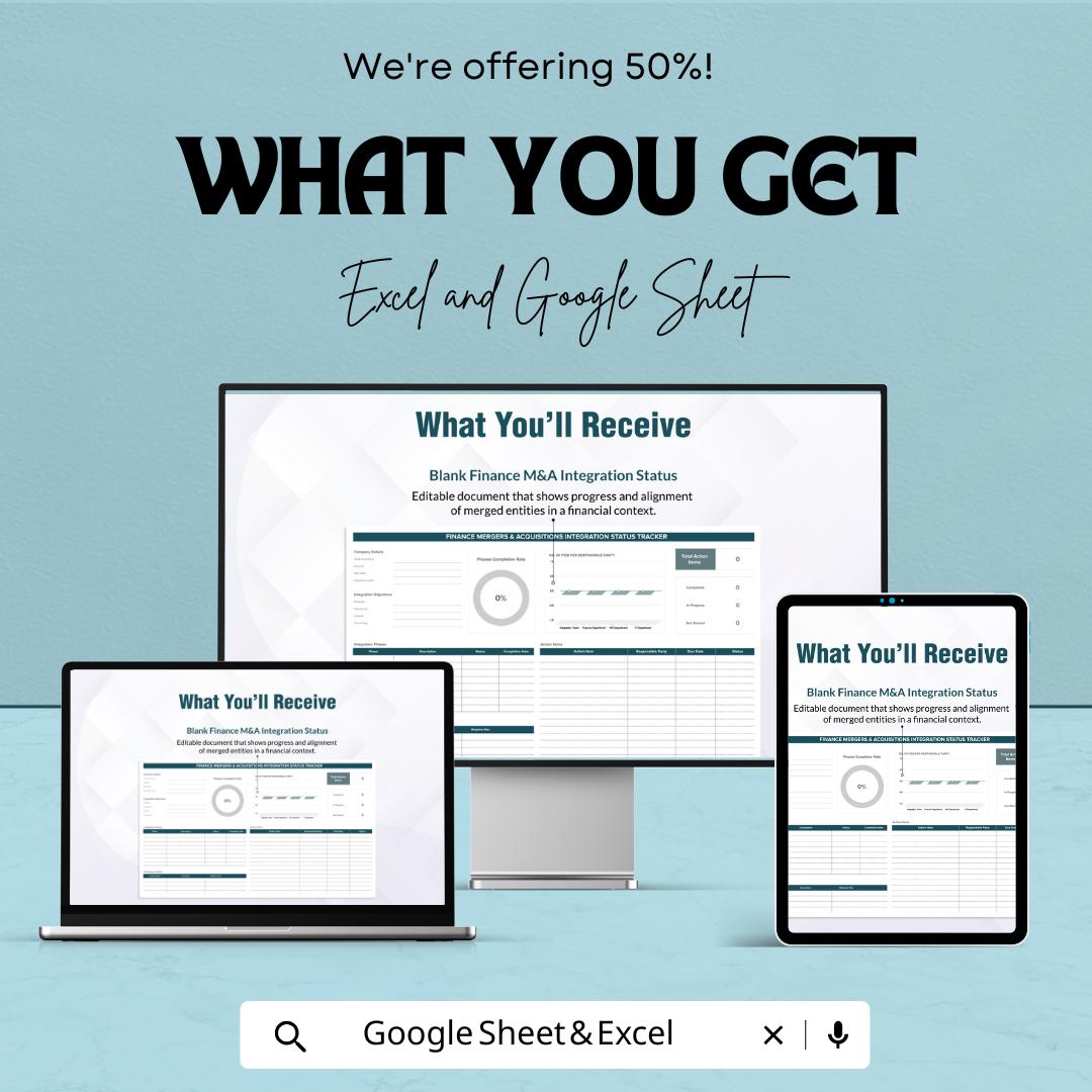 A ready-to-use Excel and Google Sheets template for tracking M&A integration.