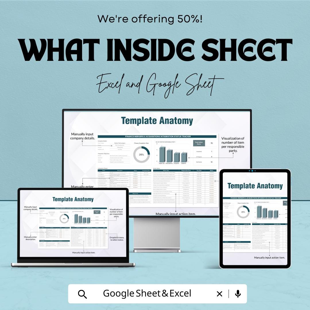 Finance Mergers and Acquisitions Integration Status Tracker Sheet | Excel & Google Sheets Template | Track Integration Progress |