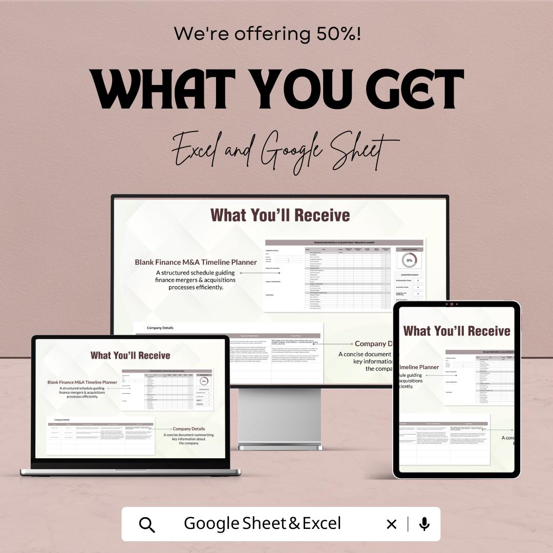 Finance Mergers and Acquisitions Timeline Planner Sheet | Excel & Google Sheets Template for Efficient Project Planning