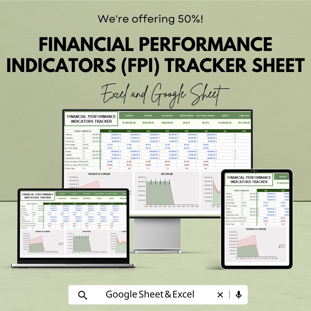 Financial Performance Indicators (FPI) Tracker Sheet | Excel & Google Sheets Template | Track Financial KPIs | Business Analytics Tool |