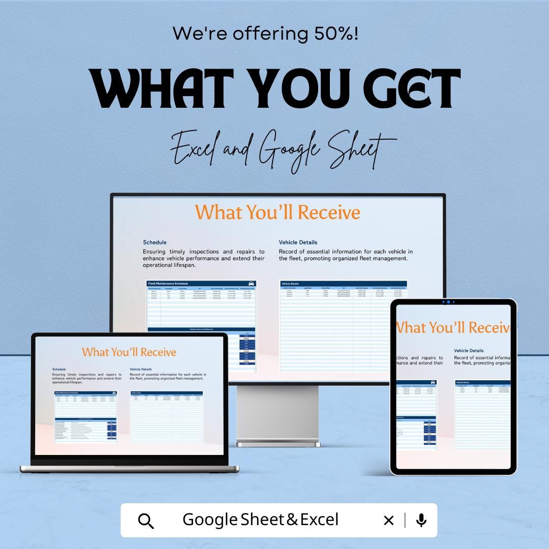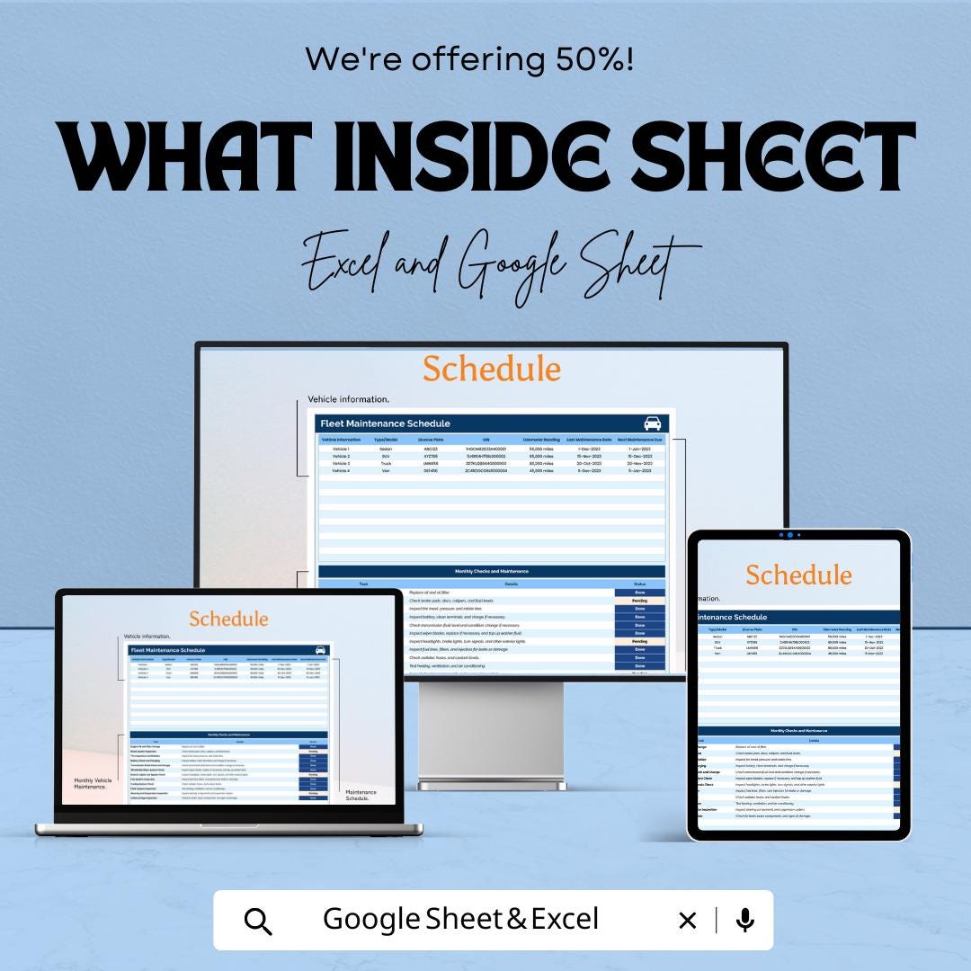 A Fleet Maintenance Schedule Sheet available in Excel and Google Sheets formats.