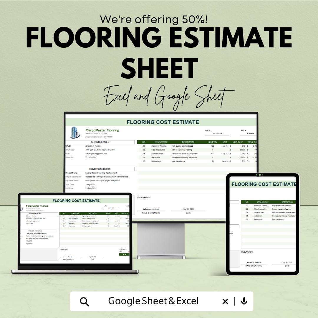 Flooring Estimate Sheet – Excel & Google Sheets Template for Cost Estimation, Flooring Pricing, and Project Quotes