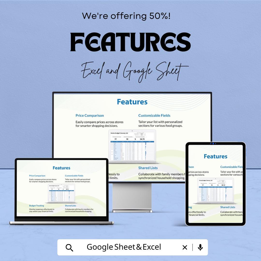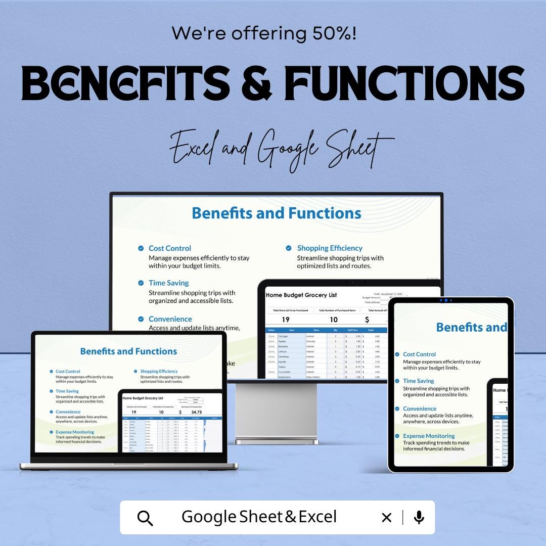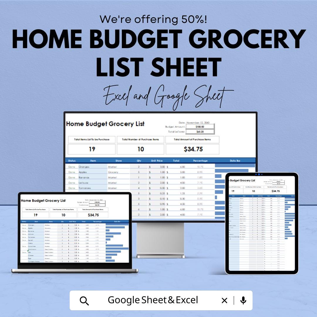 Home Budget Grocery List Template - Excel and Google Sheets | Budget Tracker & Grocery Shopping Organizer