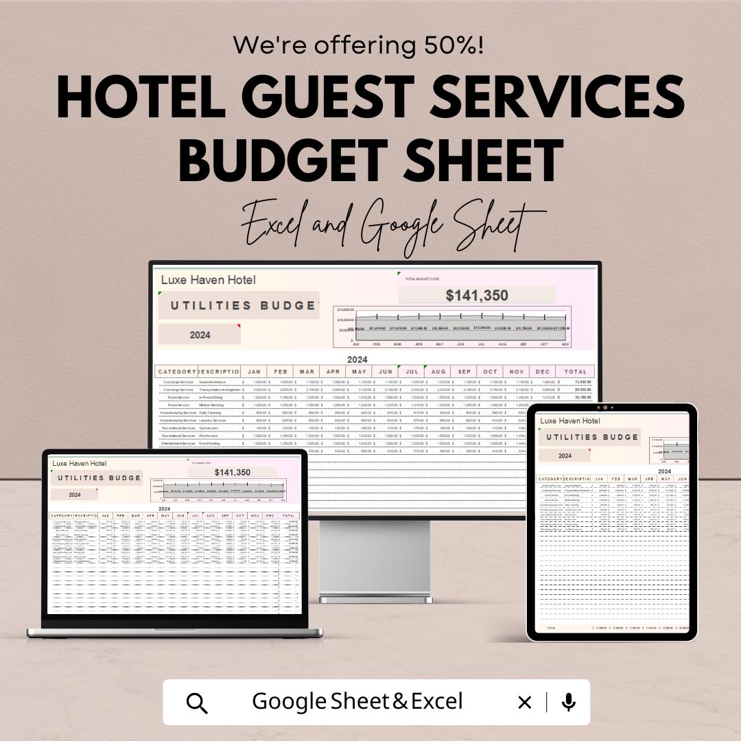 Hotel Guest Services Budget Sheet – Excel & Google Sheet Template – 2024 Financial Planning for Hotels – Track Services and Enhance Guest |