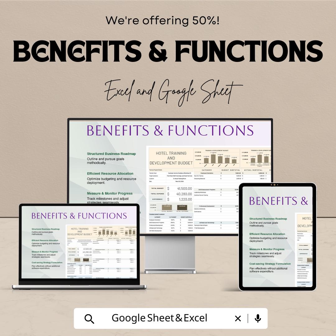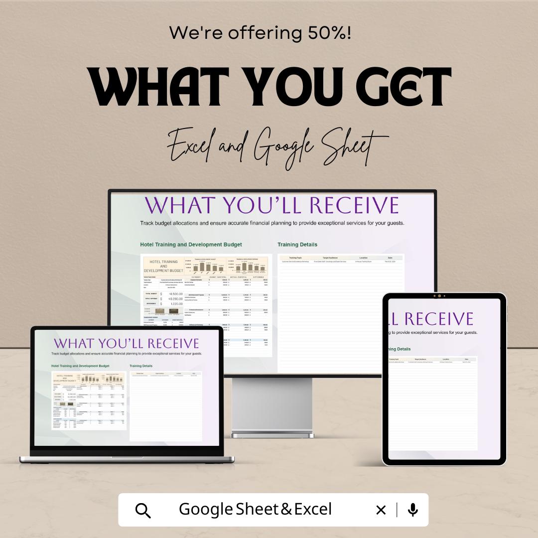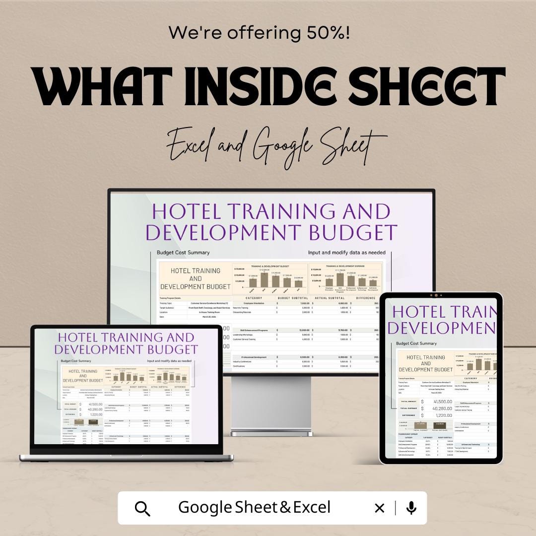 Hotel Training and Development Budget Sheet – Excel & Google Sheet Template – 2024 Training Budgeting for Hotels – Track Staff Training