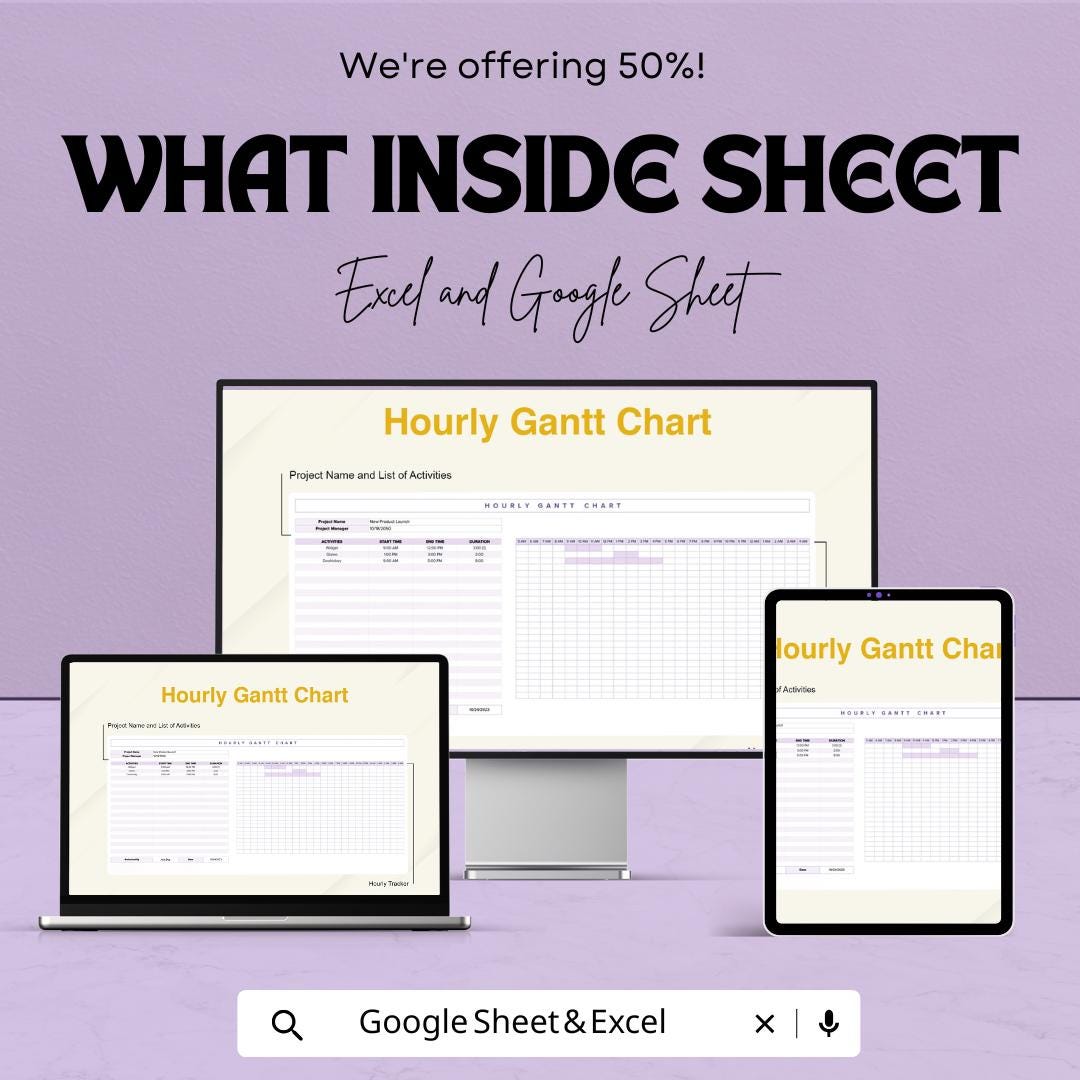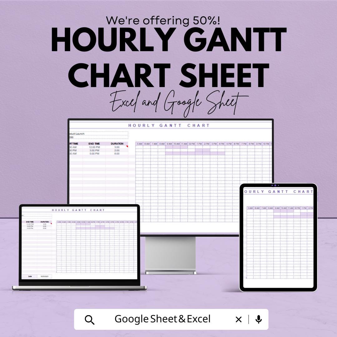 Hourly Gantt Chart Template - Excel & Google Sheets - Project Planning Schedule - Customizable Project Timeline - Time Management Tool