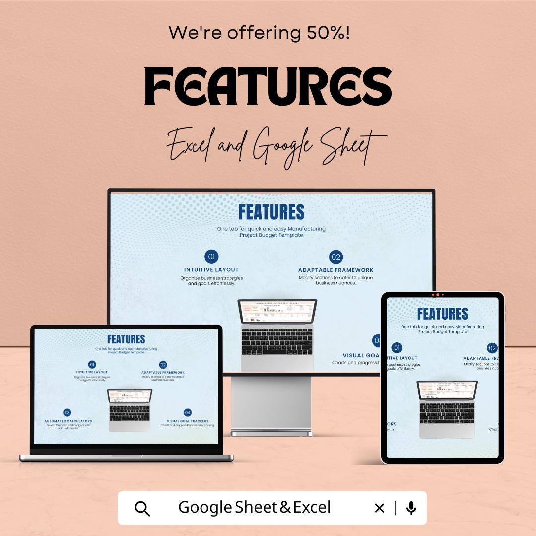A fully customizable Manufacturing Project Budget Template compatible with both Excel and Google Sheets.