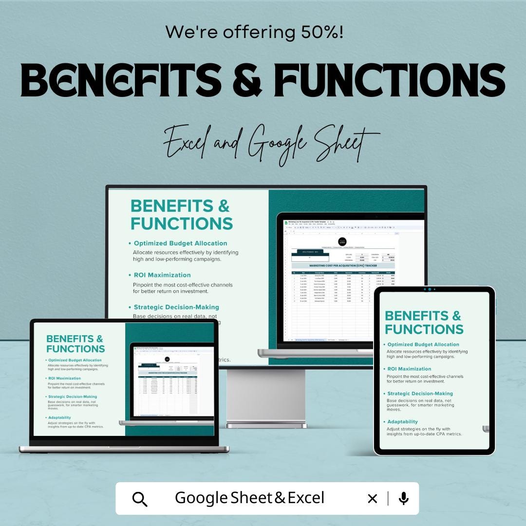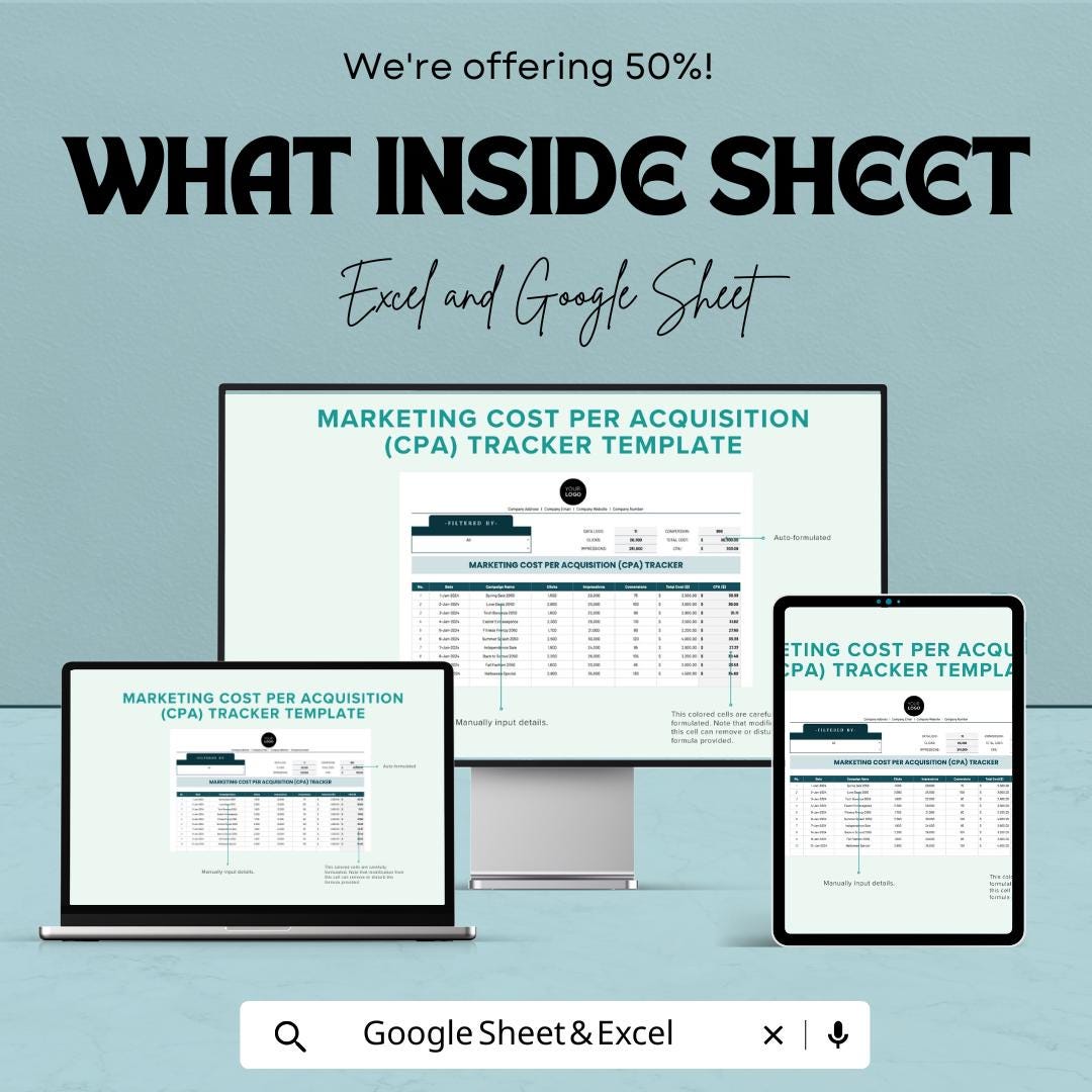 Marketing Cost Per Acquisition (CPA) Tracker Sheet - Excel & Google Sheets Template | Advertising Cost Tracker | Campaign Analysis