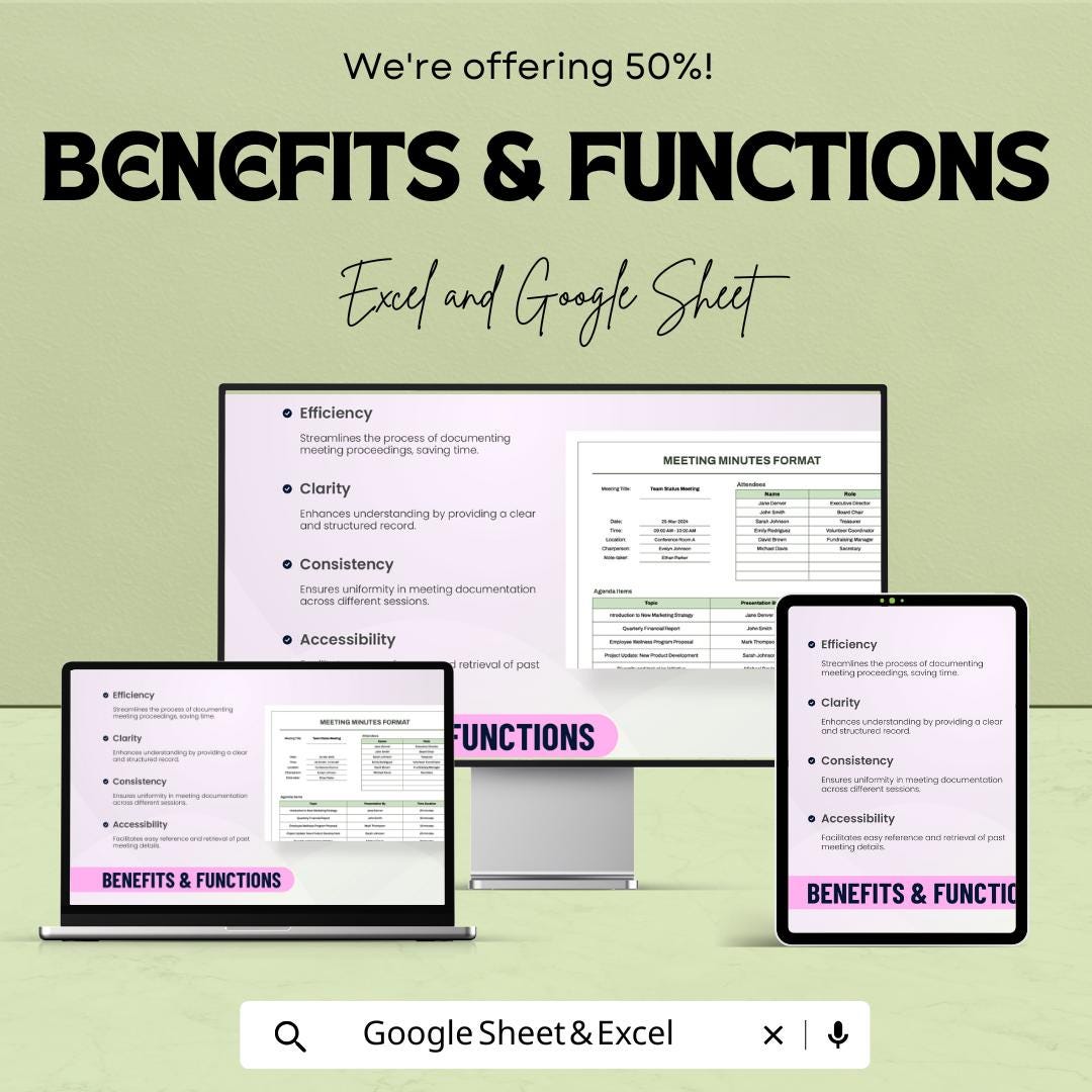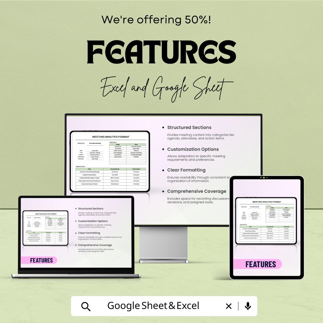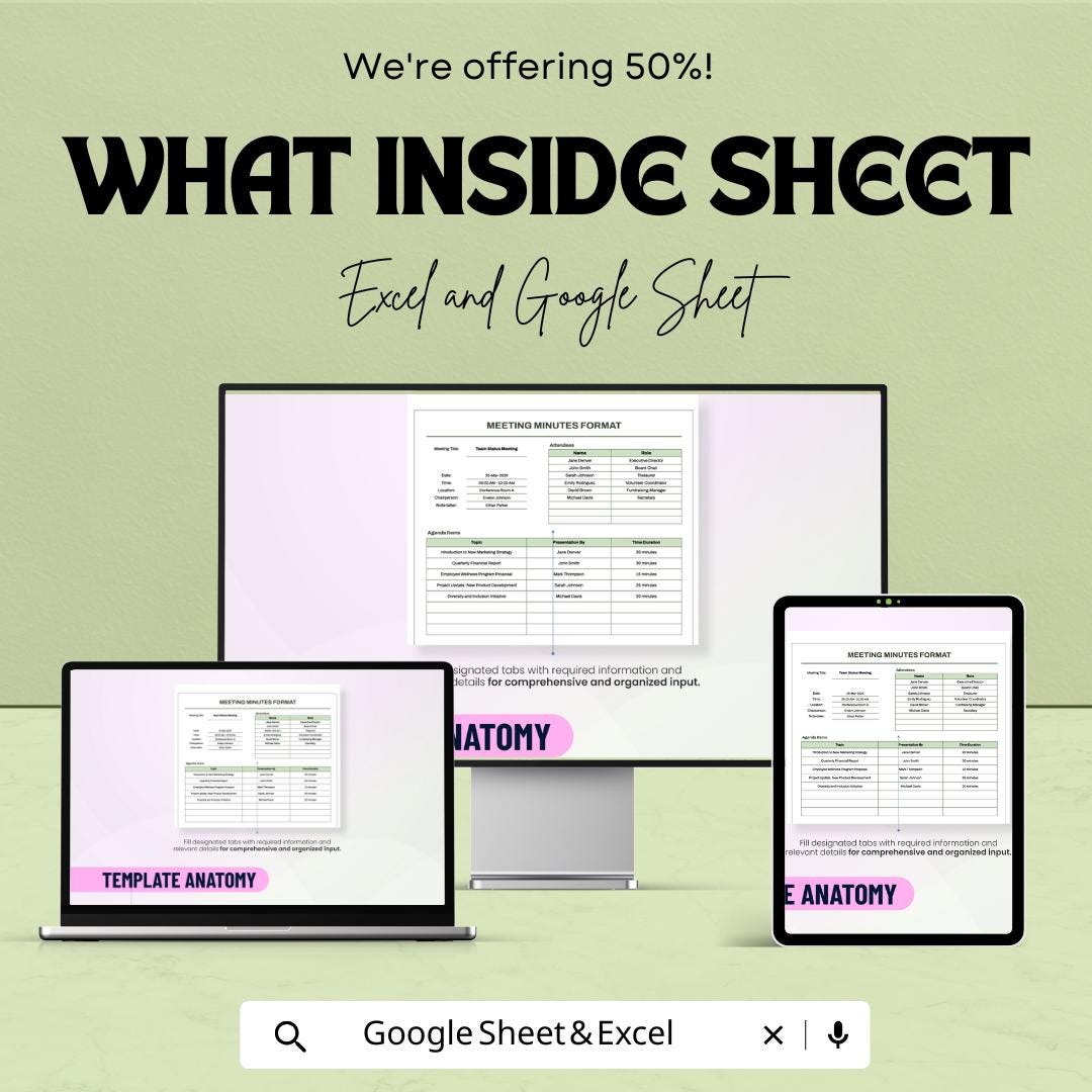 Meeting Minutes Template – Editable Excel & Google Sheet | Professional Meeting Documentation Format | Instant Download