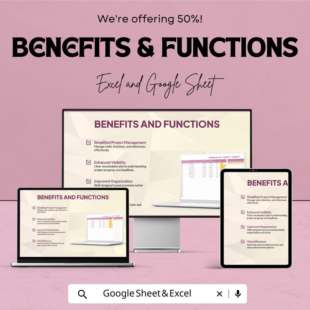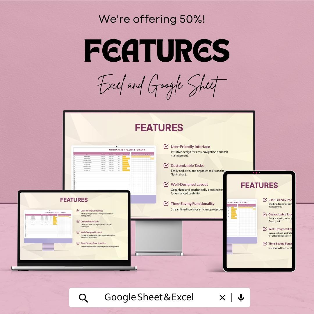 Minimalist Gantt Chart Template - Excel & Google Sheets - Project Management Schedule - Customizable Timeline - Task Tracker