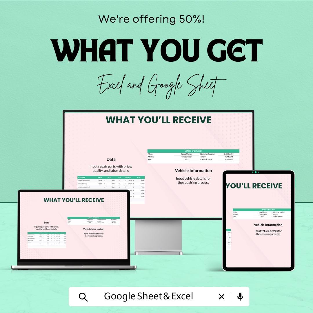 Editable & Customizable: Fully customizable to meet your specific needs. Adjust fields for vehicle details, repair costs, labor charges, and more. You can easily add or modify information, making it perfect for various types of repairs.