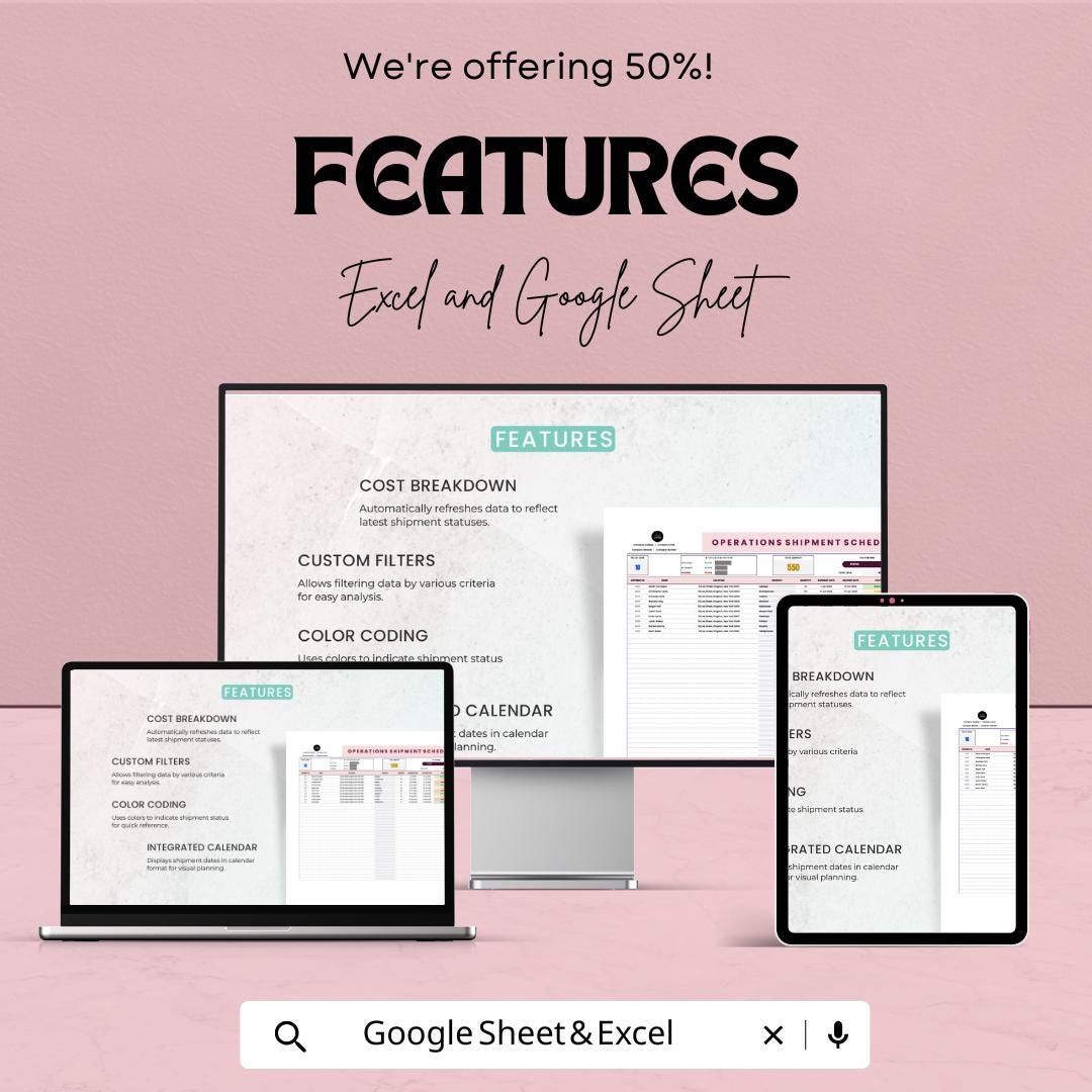 Operations Shipment Schedule Tracker Sheet | Excel & Google Sheet Template | Product Management | Shipment Tracker |