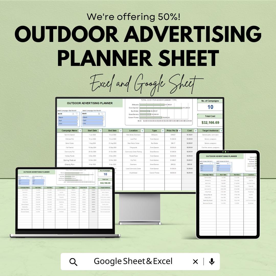 Outdoor Advertising Planner Sheet – Excel & Google Sheets | Advertising Campaign Tracker | Budget Management, Campaign Planning