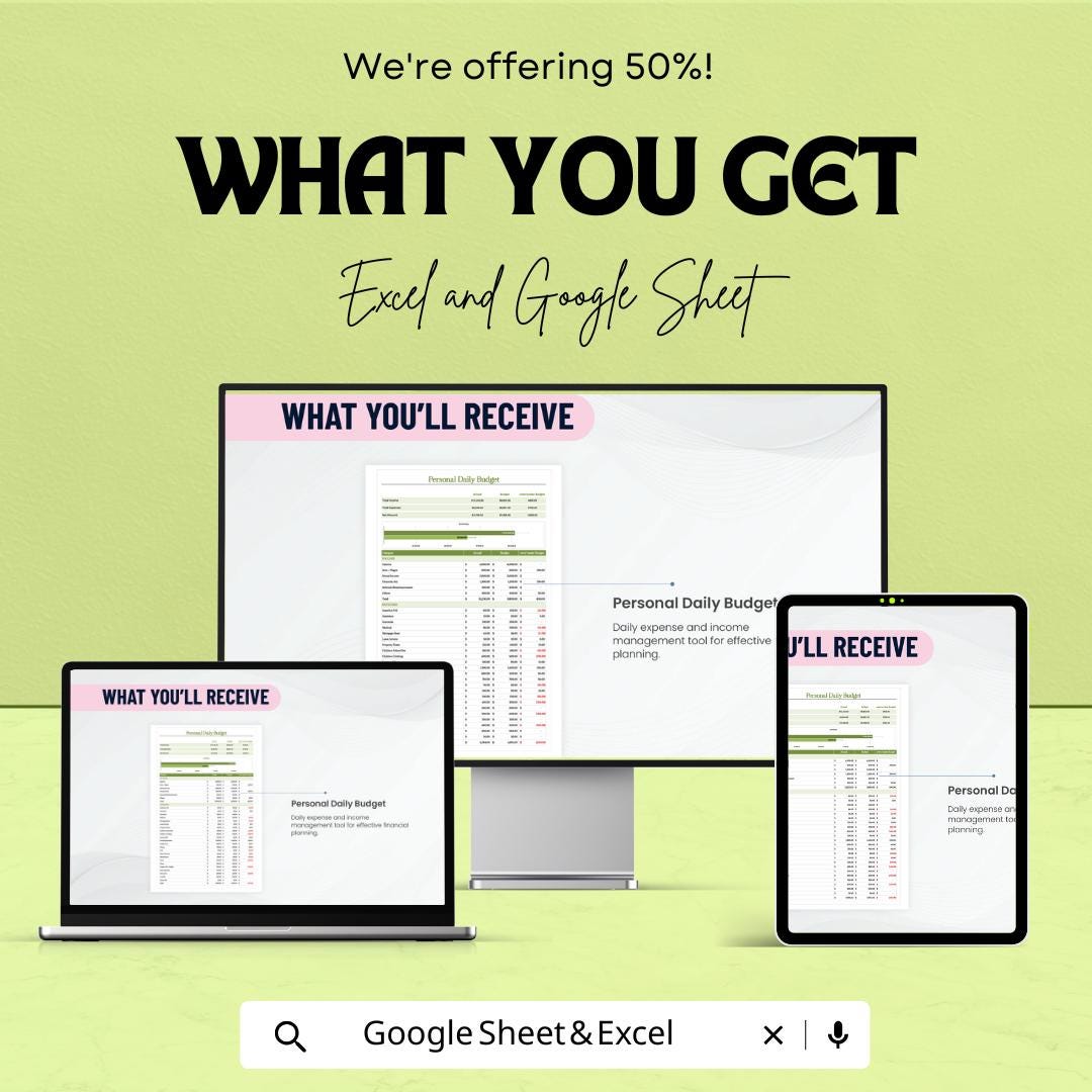 Personal Daily Budget Template - Excel & Google Sheets - Daily Expense Tracker - Financial Planner - Budgeting Tool