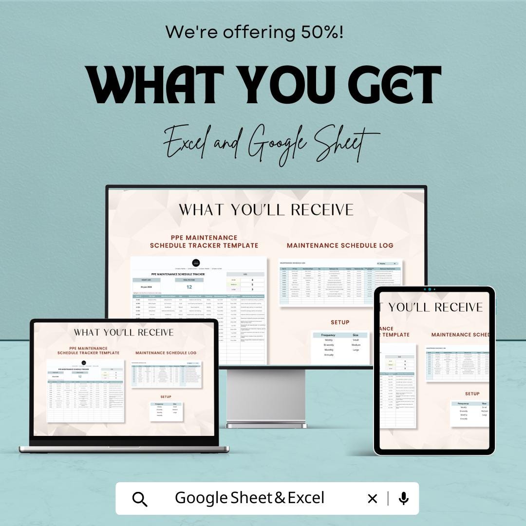 PPE Maintenance Schedule Tracker Sheet | Excel & Google Sheets Template | Personal Protective Equipment Tracker | Safety Compliance Tool |