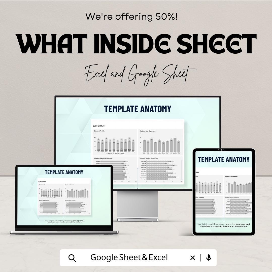 Bar Chart Layouts: Pre-designed charts for tracking variables such as Student Age, Height, Weight, and more. You can easily modify them to suit your needs.