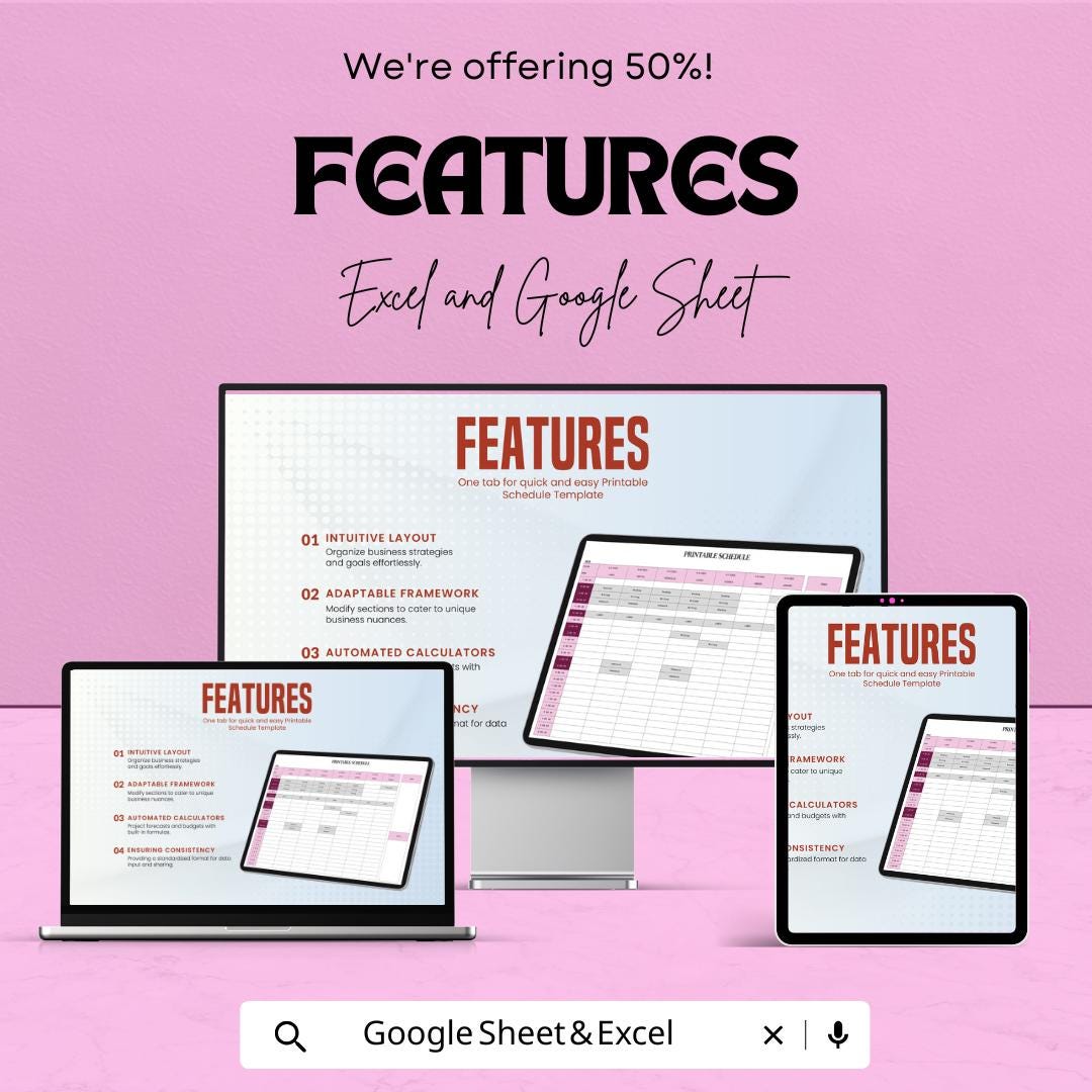 Stay organized and productive with our Printable Schedule Sheet, designed for both Google Sheets and Excel. Perfect for managing daily, weekly, or monthly tasks, this planner is fully customizable to suit your specific needs. Whether you're planning personal or work schedules, this time management tool helps you keep track of important activities.