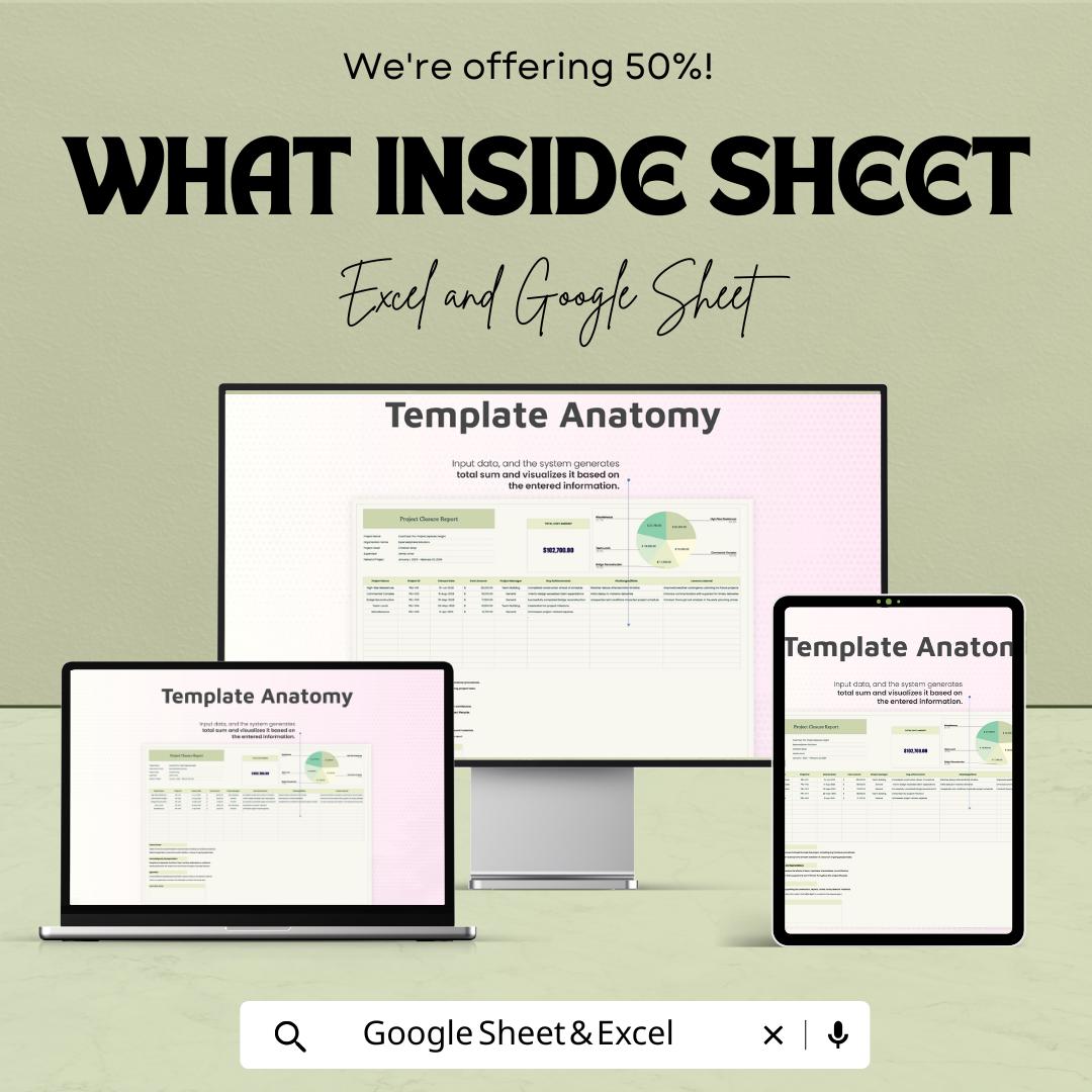 Start organizing and documenting your project closure today with this Excel & Google Sheets Project Closure Report Sheet. Get yours now and save 50%! Don't miss out on this limited-time offer to streamline your project management workflow and enhance your team's efficiency!