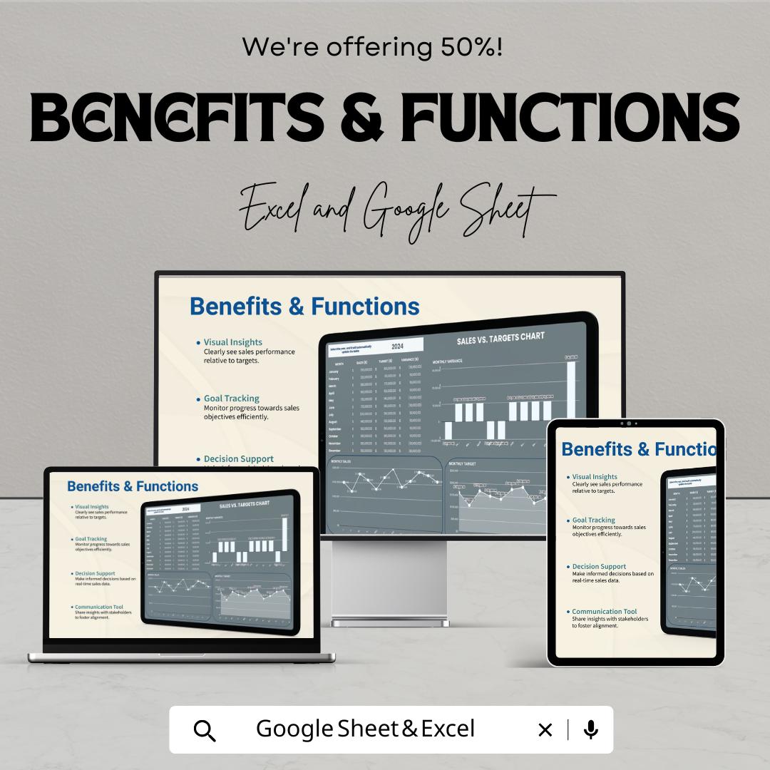 Track your monthly, quarterly, and yearly goals with ease, and visualize your progress using clear and professional charts. This tool is essential for anyone looking to monitor sales success, identify gaps, and optimize strategies.