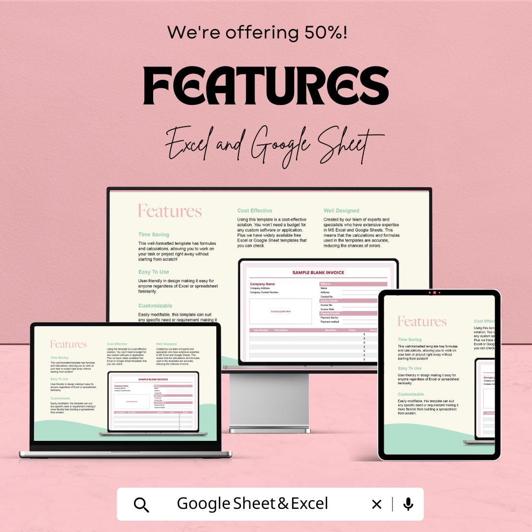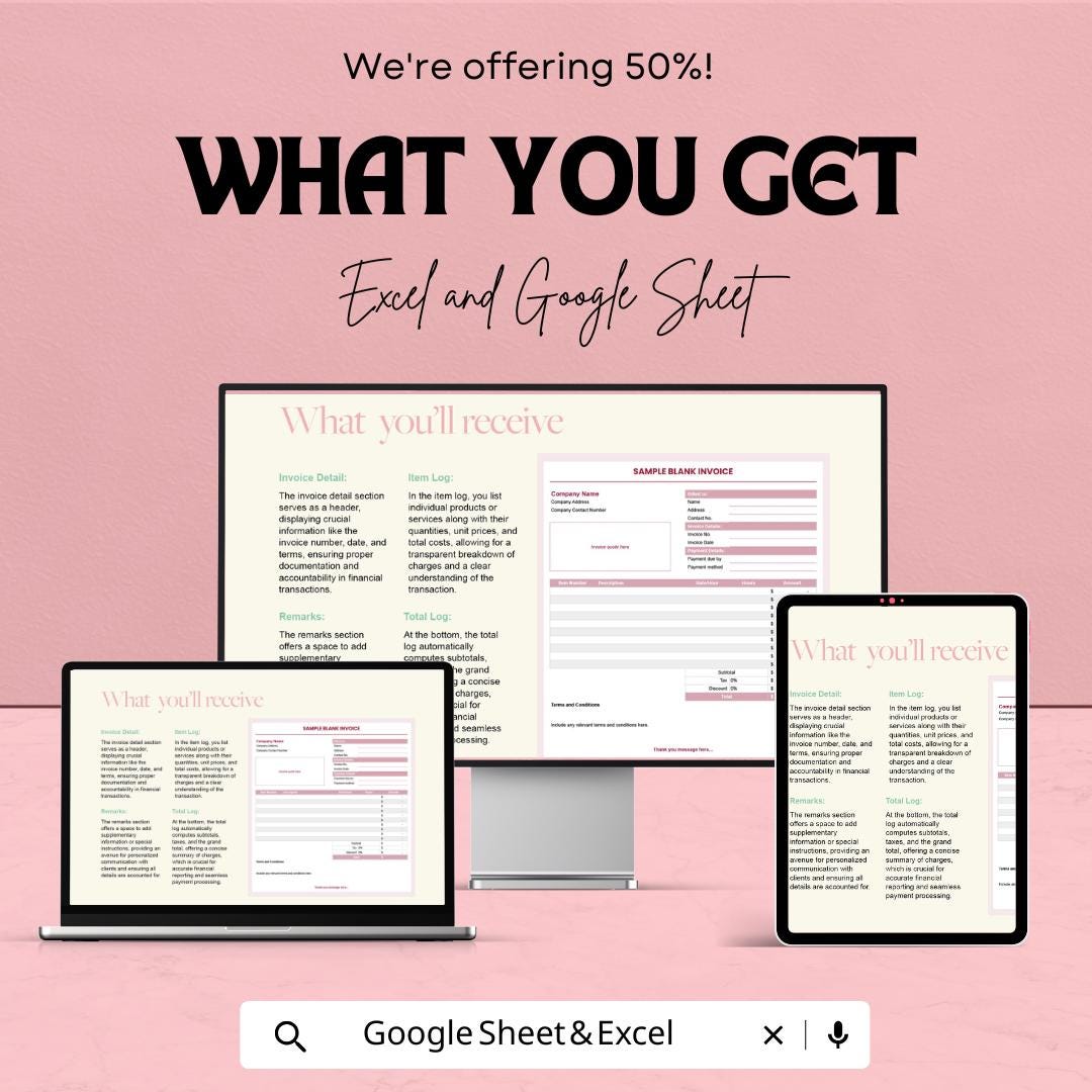 Sample Blank Invoice Template – Editable Excel andGoogle Sheet | Professional Invoice for Business & Freelancers | Instant Download