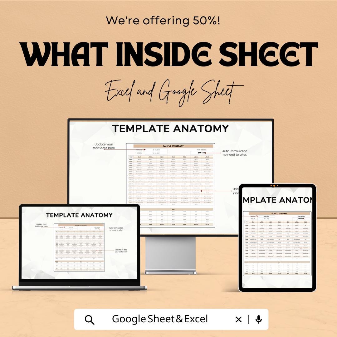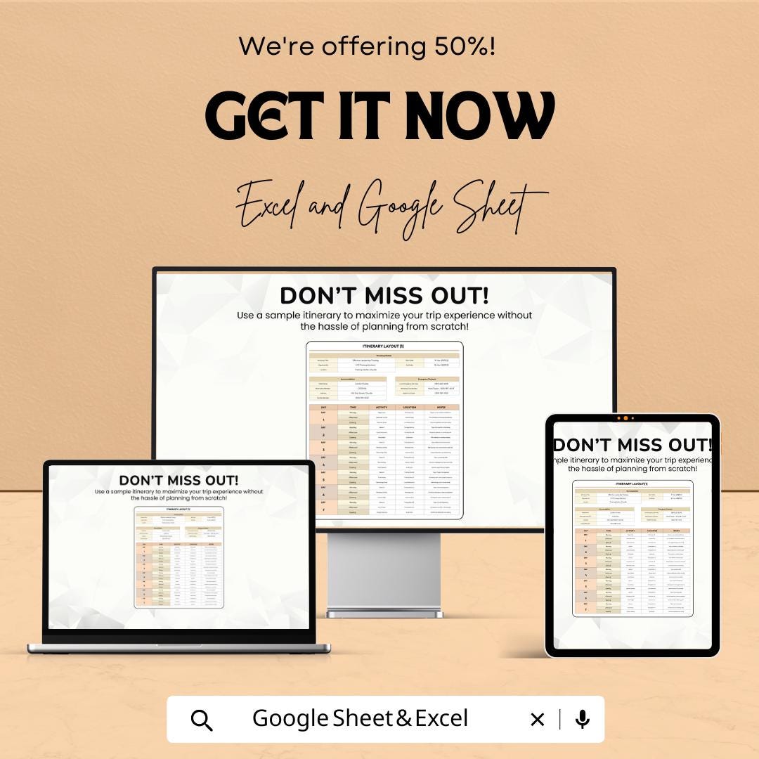 A digital download of the Sample Itinerary Sheet template in Excel and Google Sheets formats.