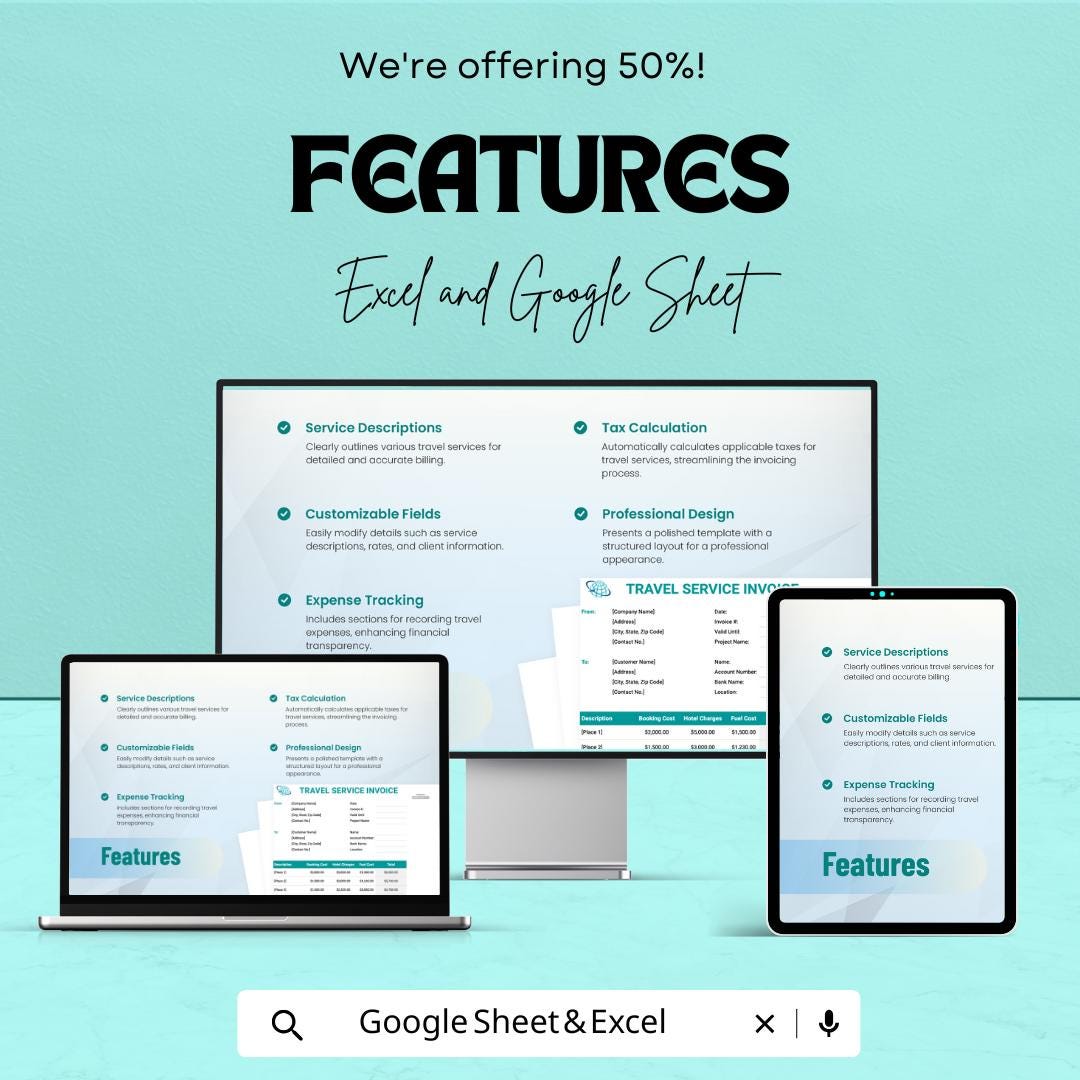 Sample Travel Service Invoice Sheet | Excel & Google Sheets Template | Travel Billing Template for Service Providers
