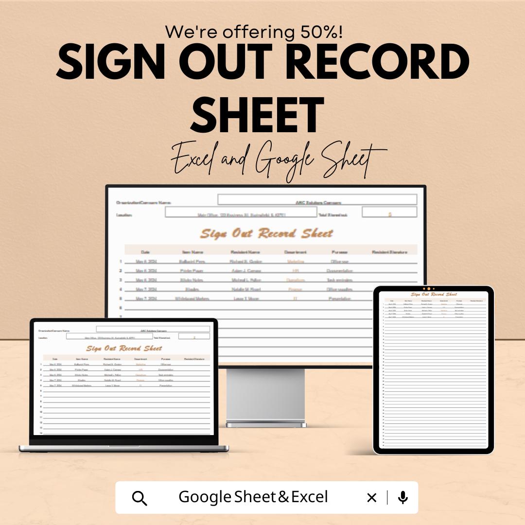 Sign Out Record Sheet | Excel and Google Sheets Template | Employee or Visitor Sign-Out Log | Accountability & Tracking Sheet