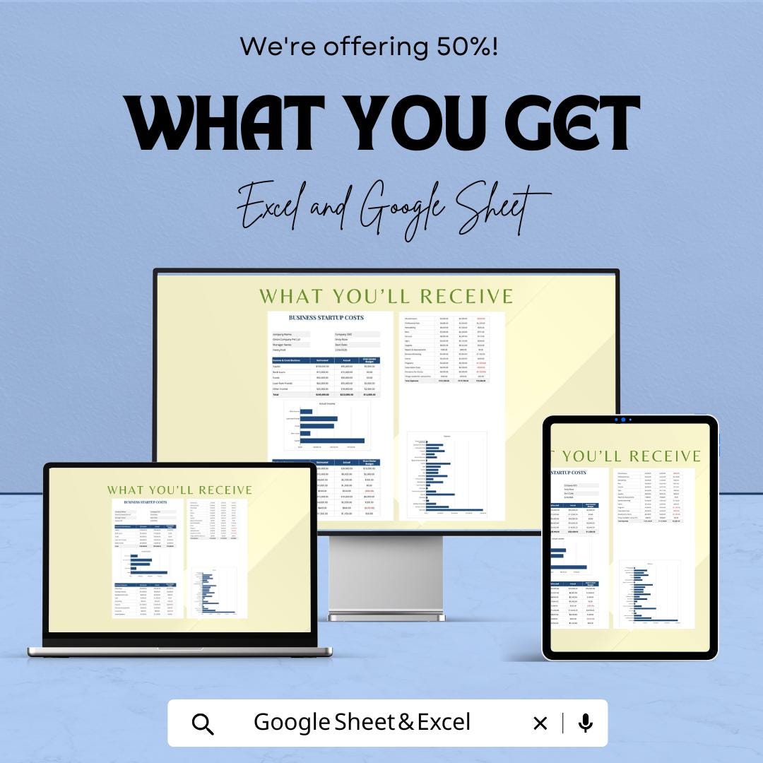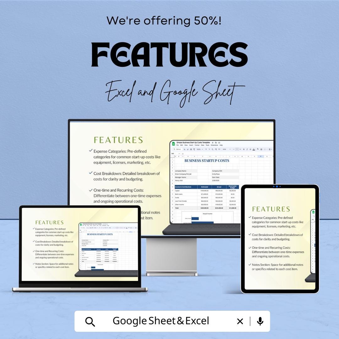 Simple Business Startup Costs Template - Excel & Google Sheets, Budget Planner for New Business, Cost Breakdown Tracker
