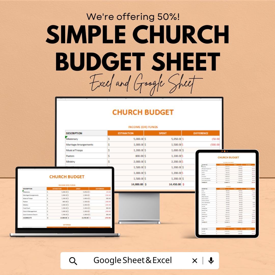 Simple Church Budget Sheet - Excel & Google Sheets Template for Church Fund Management and Financial Planning