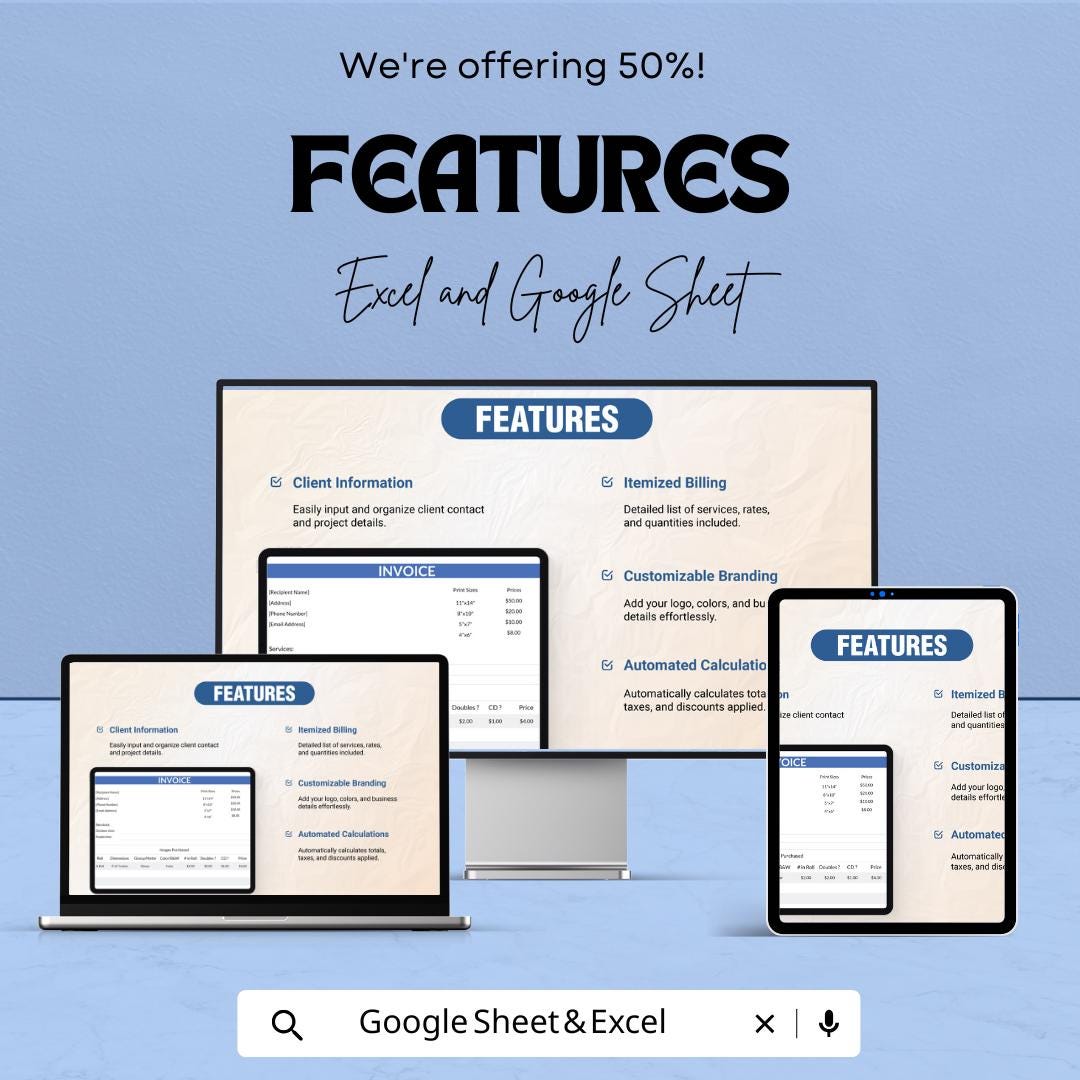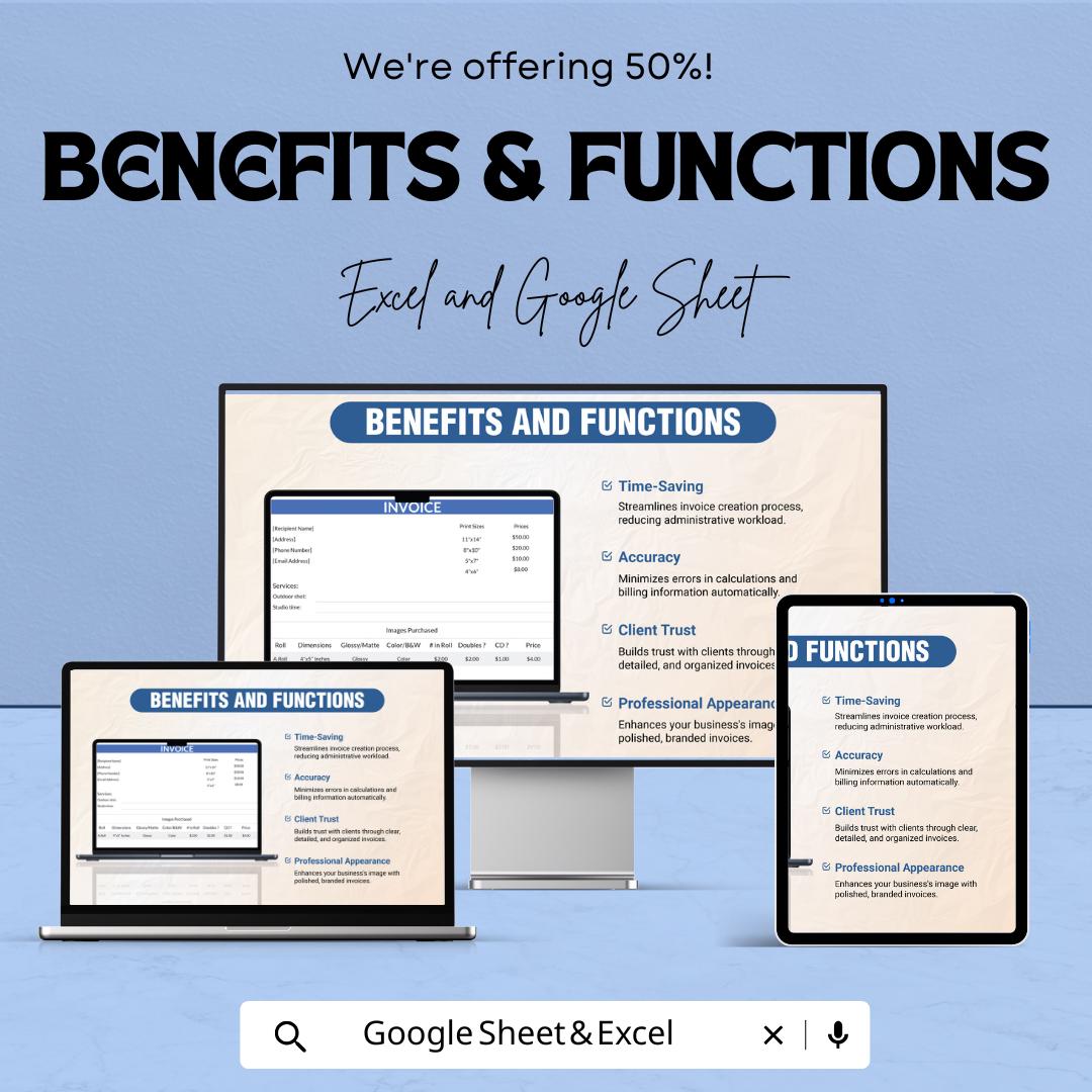 Simple Photography Invoice Template - Excel & Google Sheets, Professional Photography Billing, Customizable Invoice Sheet
