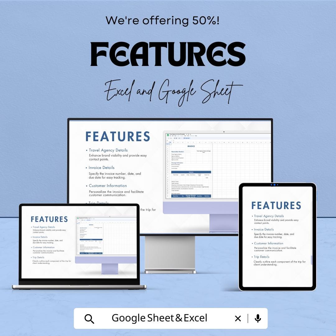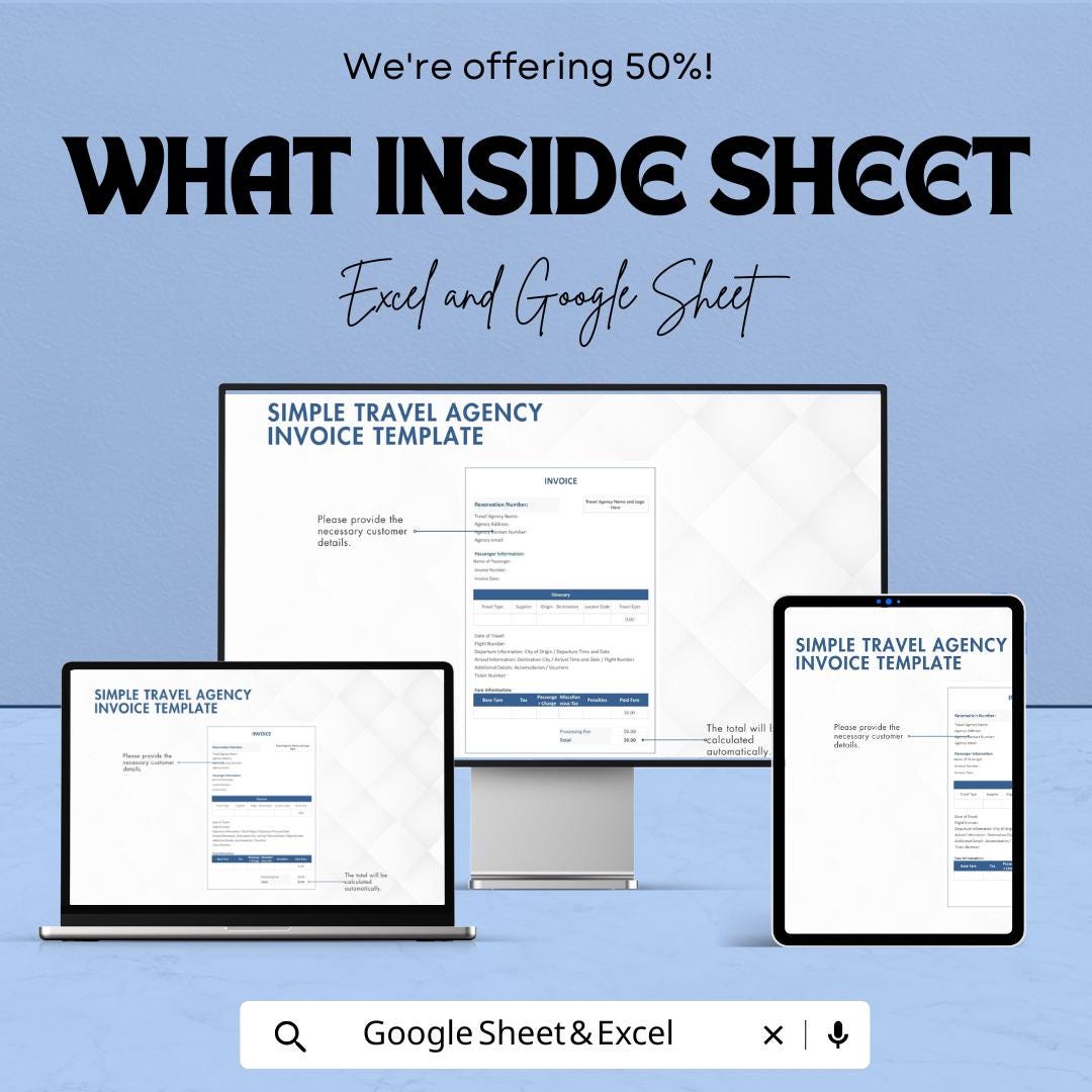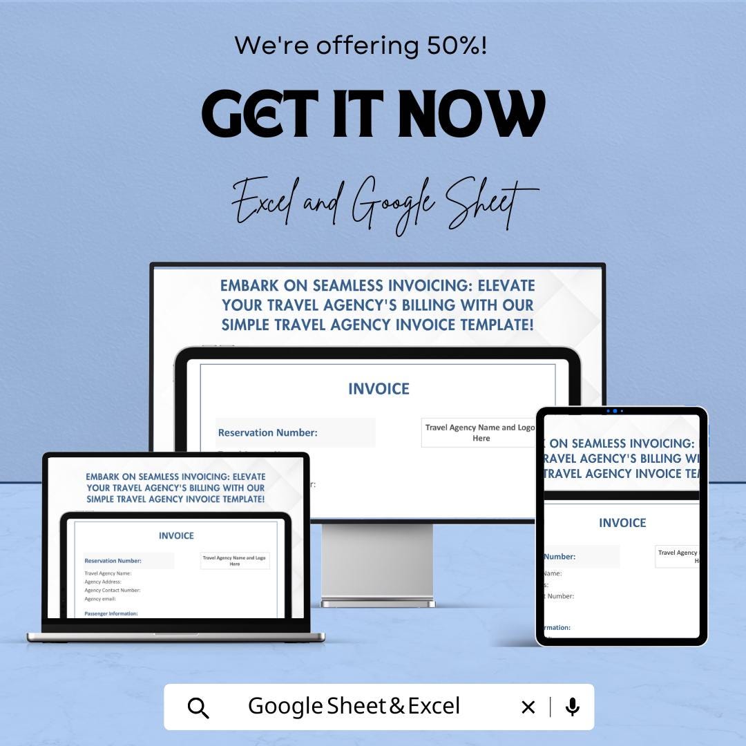 Simple Travel Agency Invoice Sheet - Excel and Google Sheets | Customizable Travel Invoice Template | Reservation & Payment Tracker