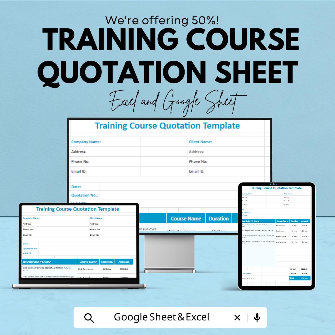 Training Course Quotation Sheet | Customizable Excel & Google Sheet Template | Professional Course Estimate Template | Editable Training