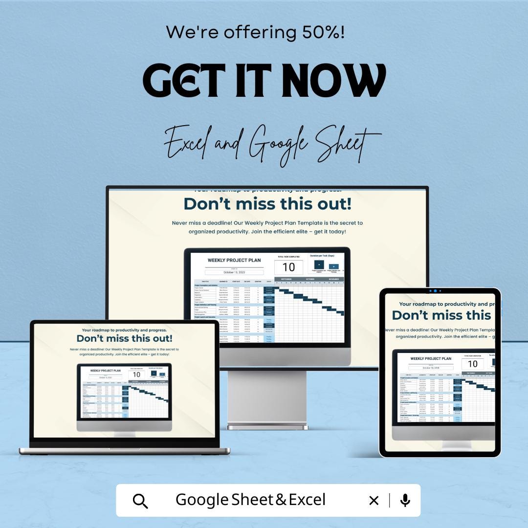 Boost your project management efficiency with this Weekly Project Plan Template! Perfect for professionals who need an organized and efficient way to track tasks, timelines, and overall project progress, this template is available in Excel and Google Sheets for seamless use across platforms.