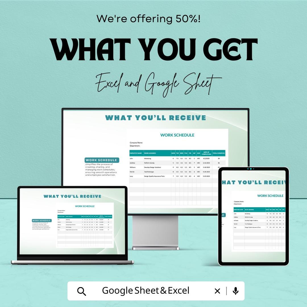 Work Schedule Sheet Template for Excel and Google Sheets | Employee Shift Planner & Work Allocation Tracker | Boost Workforce Efficiency |