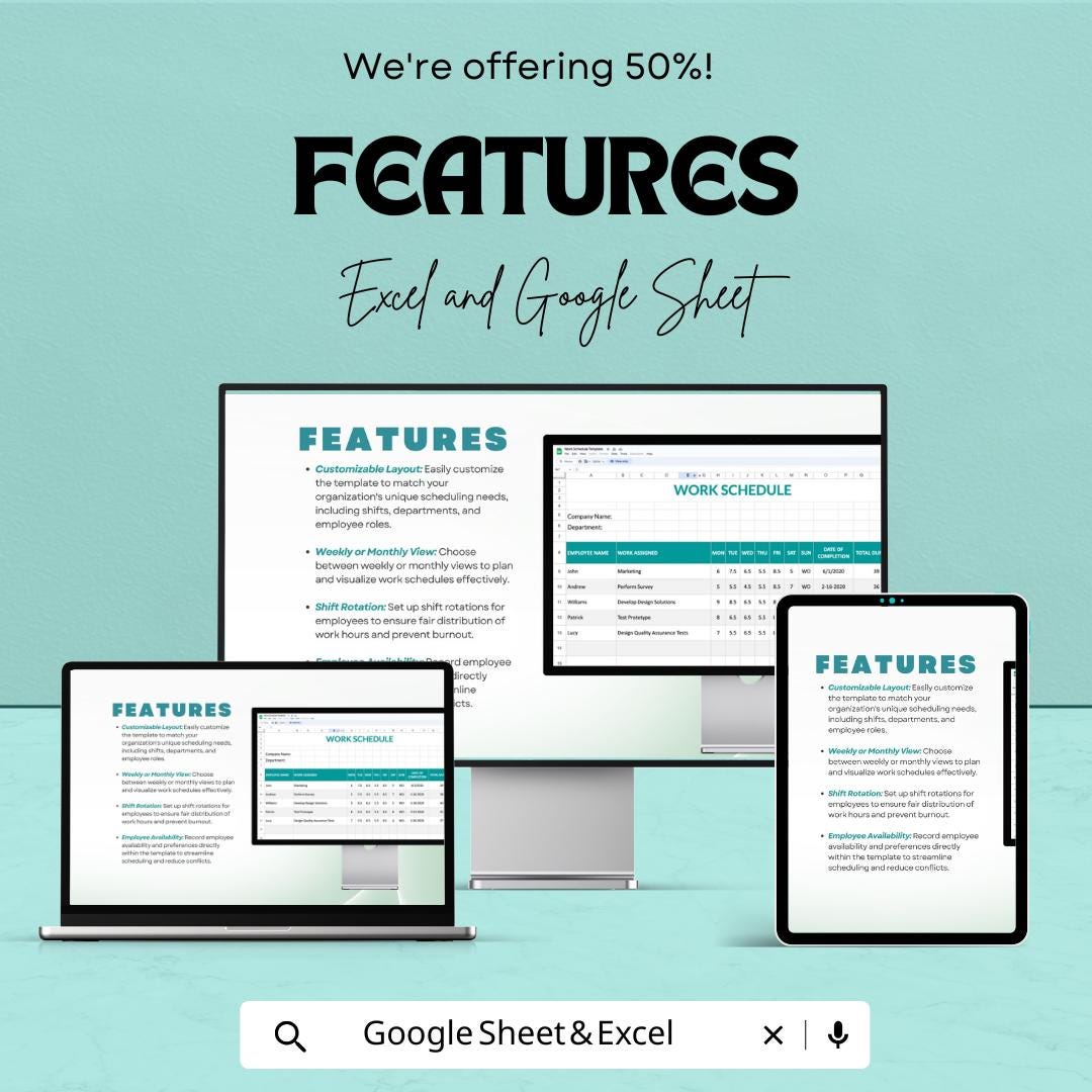 Simplify Your Workforce Management with the Work Schedule Sheet – Available in Excel & Google Sheets!